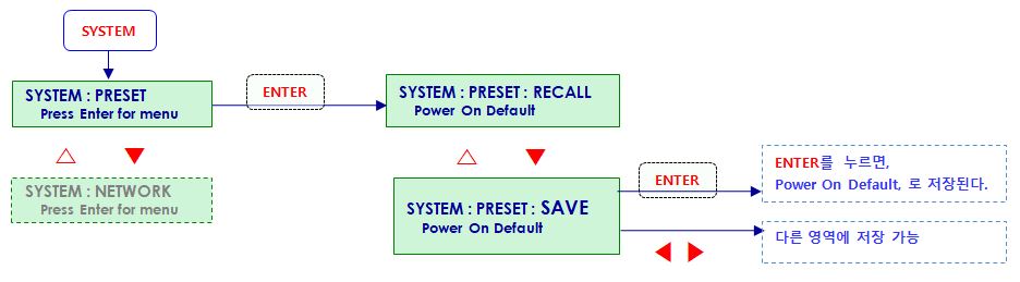 SPG8000AÀÇ Àü¿øÀÌ ²¨Á³´Ù ÄÑÁ³À» ¶§, ÀÌÀü¿¡ ¼³Á¤ÇÑ ³»¿ëÀ» Àû¿ëÇÏ·Á¸é 'Power On Default' preset¿¡ ÀúÀåÇÏ¸é µË´Ï´Ù. |